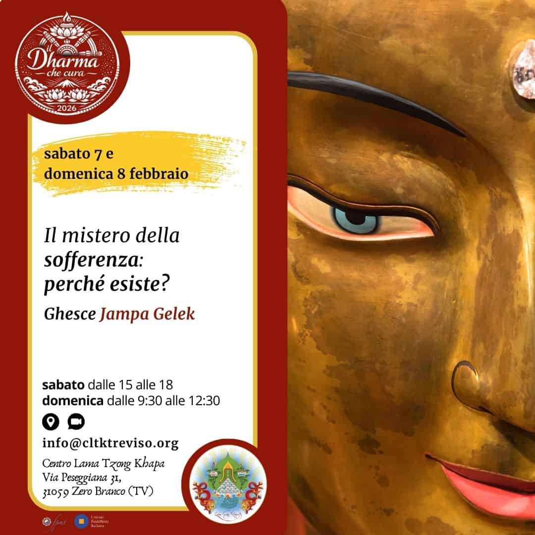 L’incontro introduce uno dei temi centrali dell’insegnamento del Buddha: la sofferenza. A partire dall’esperienza comune di disagio e insoddisfazione, Ghesce-la guiderà i partecipanti a comprenderne il significato secondo il Dharma, mostrando come la sofferenza non si limiti al dolore evidente ma includa forme più sottili e pervasive. Attraverso le prime due Nobili Verità vengono esplorate le cause profonde della sofferenza e il ruolo della mente nel generarla, offrendo una base di comprensione utile sia ai nuovi interessati sia ai praticanti più esperti.