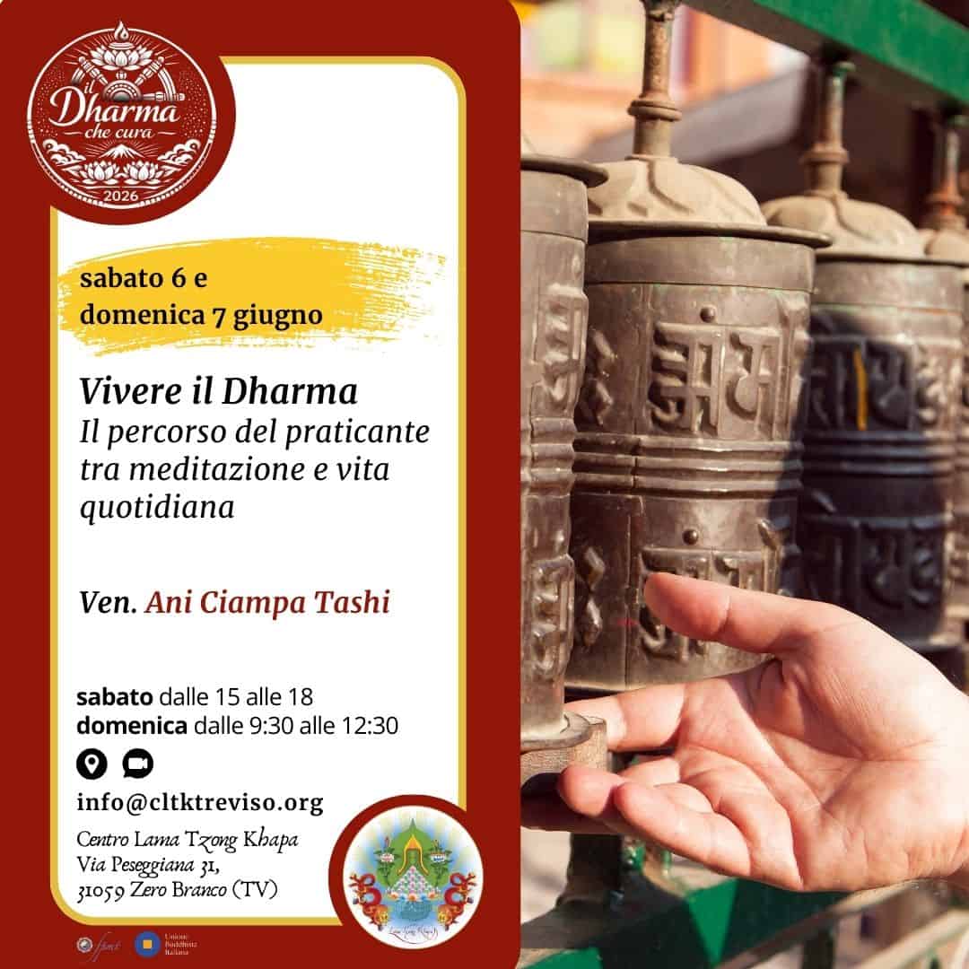 Sabato 6 e domenica 7 giugno Ven. Ani Ciampa Tashi L’incontro è un invito a esplorare come gli insegnamenti del Buddha possano diventare una presenza viva e concreta nella nostra esperienza quotidiana. Attraverso la sua esperienza, Ani Ciampa Tashi guiderà una riflessione sul cammino del praticante, sul dialogo continuo tra...