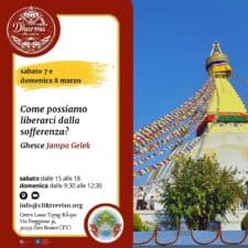 Sabato 7 e domenica 8 marzo Ven. Ghesce Jampa Gelek Come utilizzare gli strumenti che il Dharma insegna, sviluppando equilibrio emotivo e forza interiore. Questo incontro prosegue il percorso affrontando la possibilità concreta della liberazione dalla sofferenza. Ghesce-la presenta gli strumenti che il Dharma mette a disposizione per trasformare la mente e… Continua a leggere